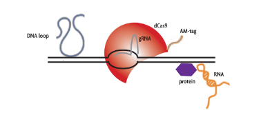 含有20個(gè)核苷酸與所需基因組區(qū)域互補(bǔ)的指導(dǎo)RNA (gRNA)與標(biāo)記的酶活性不活躍的Cas9蛋白(dCas9)結(jié)合表達(dá)。gRNA將dCas9蛋白定向到目標(biāo)序列,形成RNA-DNA異雙工。然后使用針對(duì)am標(biāo)記的dCas9蛋白的抗體在細(xì)胞上進(jìn)行染色質(zhì)免疫沉淀,以富集由gRNA/dCas9復(fù)合物結(jié)合的基因組序列。